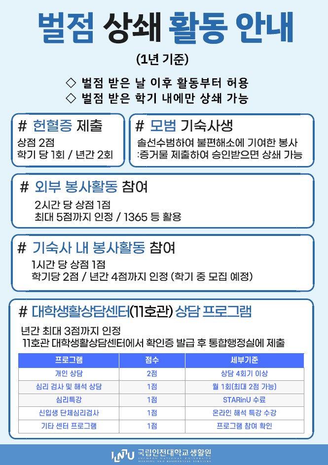 기숙사 벌점 상쇄 안내 (1년 기준)